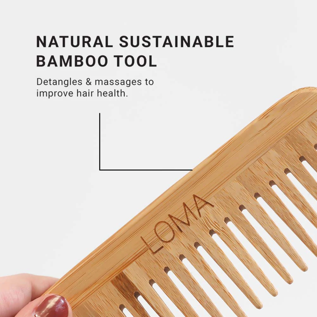 Bamboo is a significant step forward from plastics in reducing our footprint. Bamboo proliferates with little water making it preferable over wood. It is also more durable and lightweight, making detangling your hair manageable and less of an arm workout. Like all of their other ingredients, Loma's bamboo is sustainably sourced and environmentally sound to protect the plant as much as your hair.