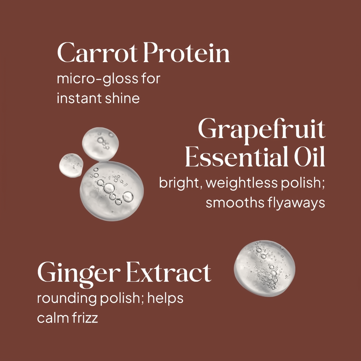 Instant shine, anti frizz, luster and thermal protection for all hair types.