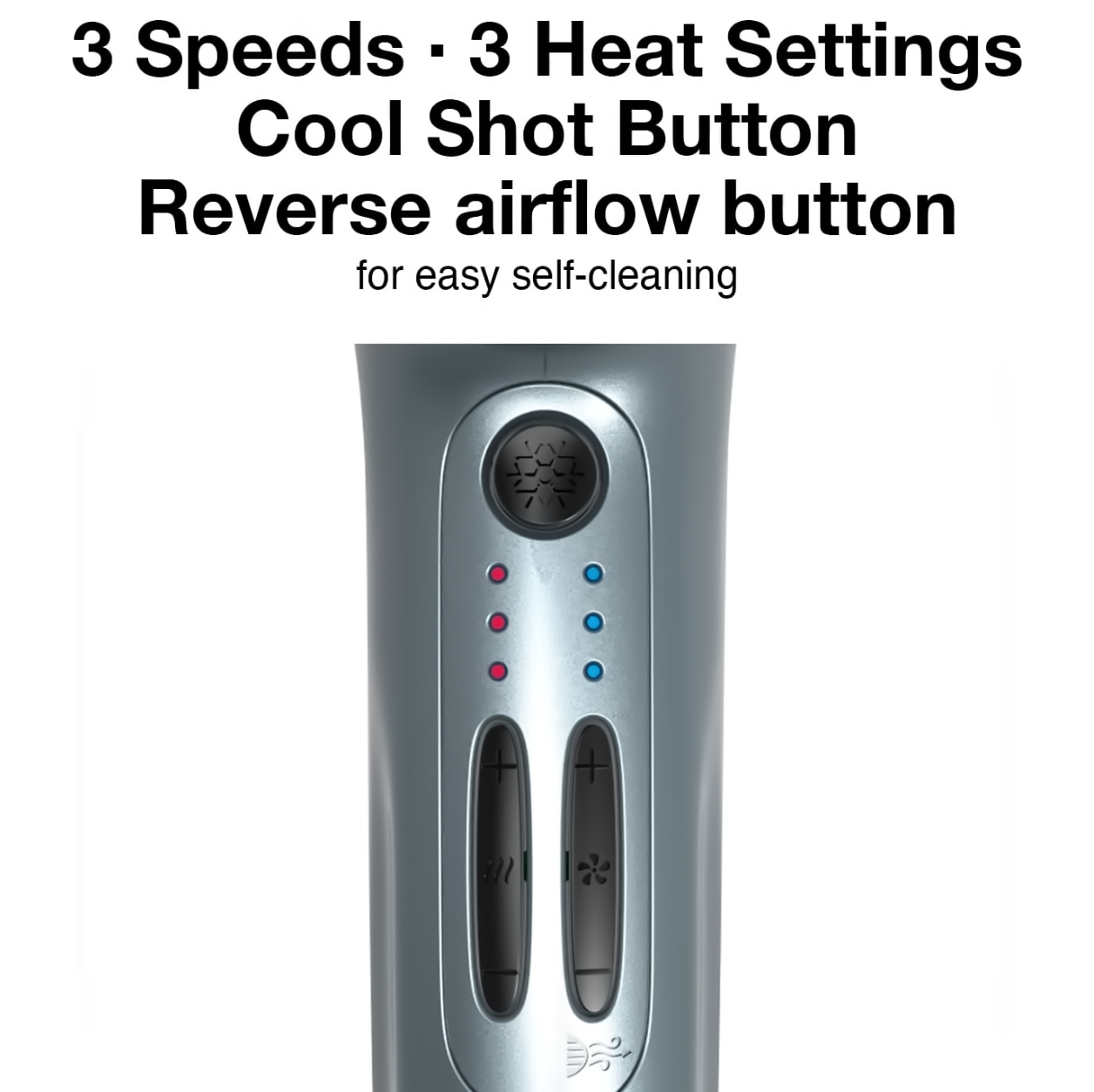 - 3 Airflow Speeds - 3 Heat Settings - Cool Shot Button
