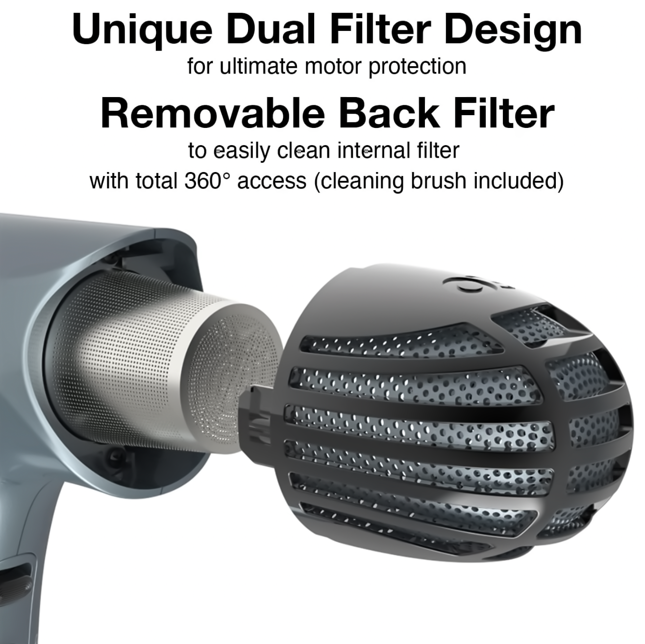 Intelligent heat control guarantees consistent temperature & prevents hair damage while state-of-the-art efficient brushless motor uses less energy than traditional hair dryers